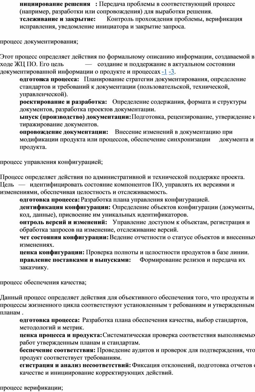 Этот процесс определяет действия по формальному описанию информации, создаваемой в ходе ЖЦ ПО. Его цель — создание и поддержание в актуальном состоянии документированной информации о продукте и процессах -1 -3.