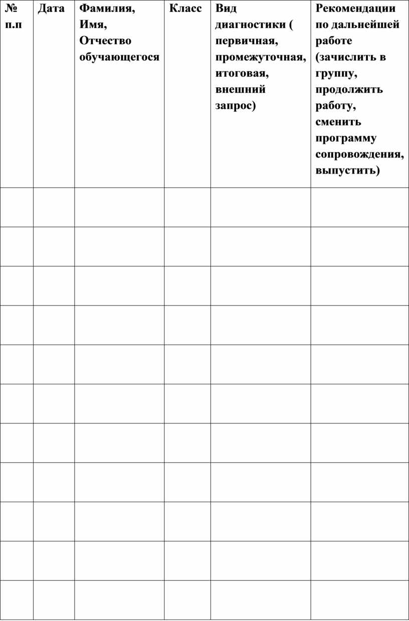 Рекомендации по дальнейшей работе (зачислить в группу, продолжить работу, сменить программу сопровождения, выпустить) |