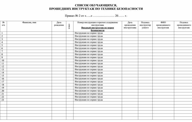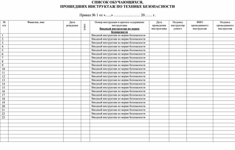 регистрации инструктажа по технике безопасности