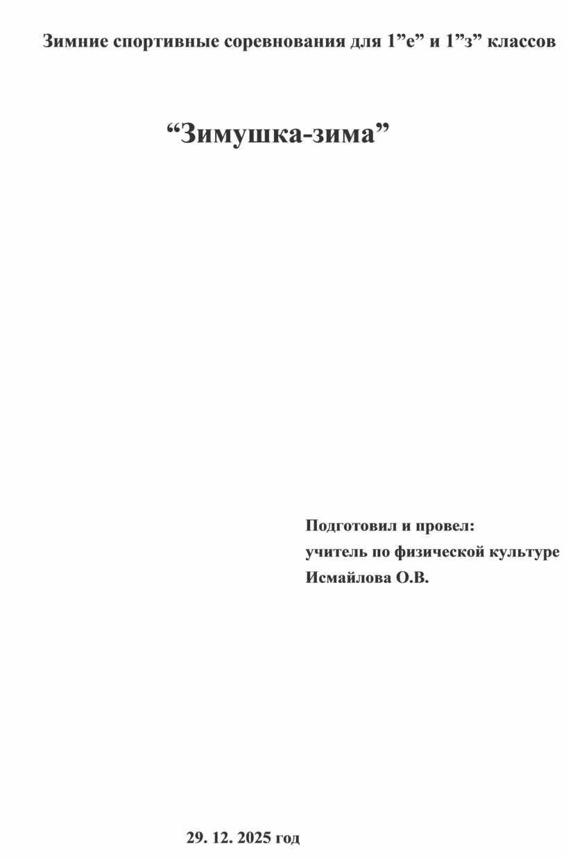 Зимние спортивные соревнования для 1”е” и 1”з” классов