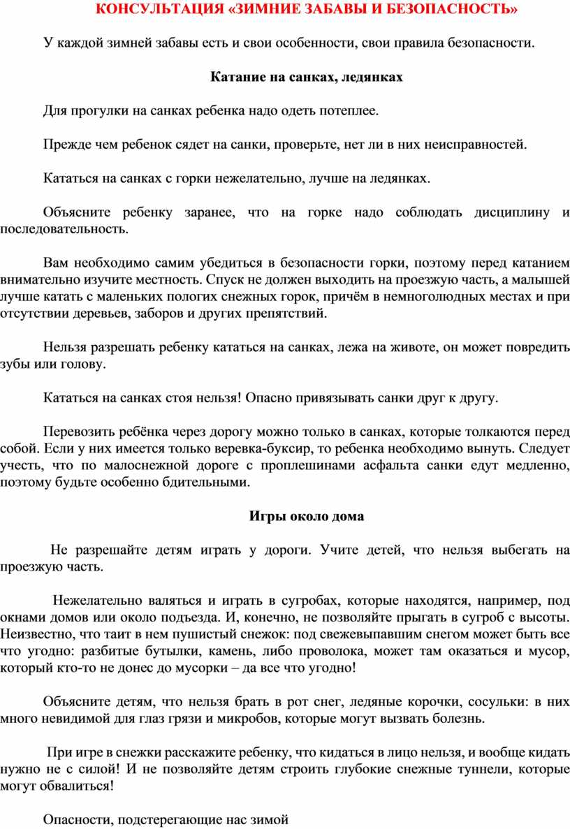 КОНСУЛЬТАЦИЯ «ЗИМНИЕ ЗАБАВЫ И БЕЗОПАСНОСТЬ»