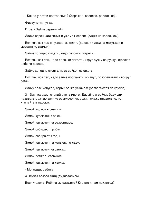 3 - Зимних развлечений очень много. Давайте я сейчас буду вам называть разные зимние развлечения, если я скажу правильно, то хлопайте в ладоши: