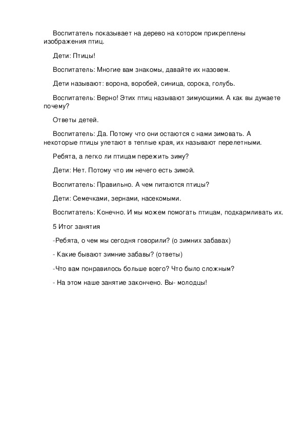 Воспитатель: Верно! Этих птиц называют зимующими. А как вы думаете
