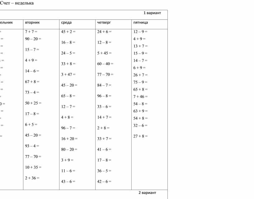Счет – неделька