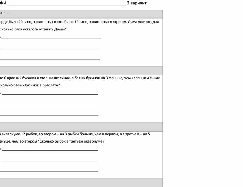 меньше, чем во втором? Сколько рыбок в третьем аквариуме? ________________________________________________ Ответ: ___________________________________________________ |