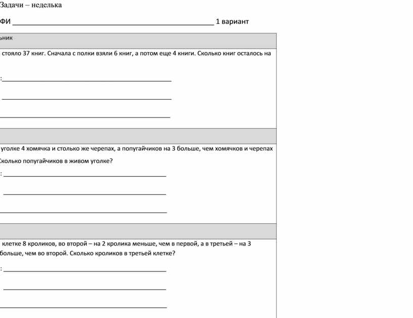 Задачи – неделька