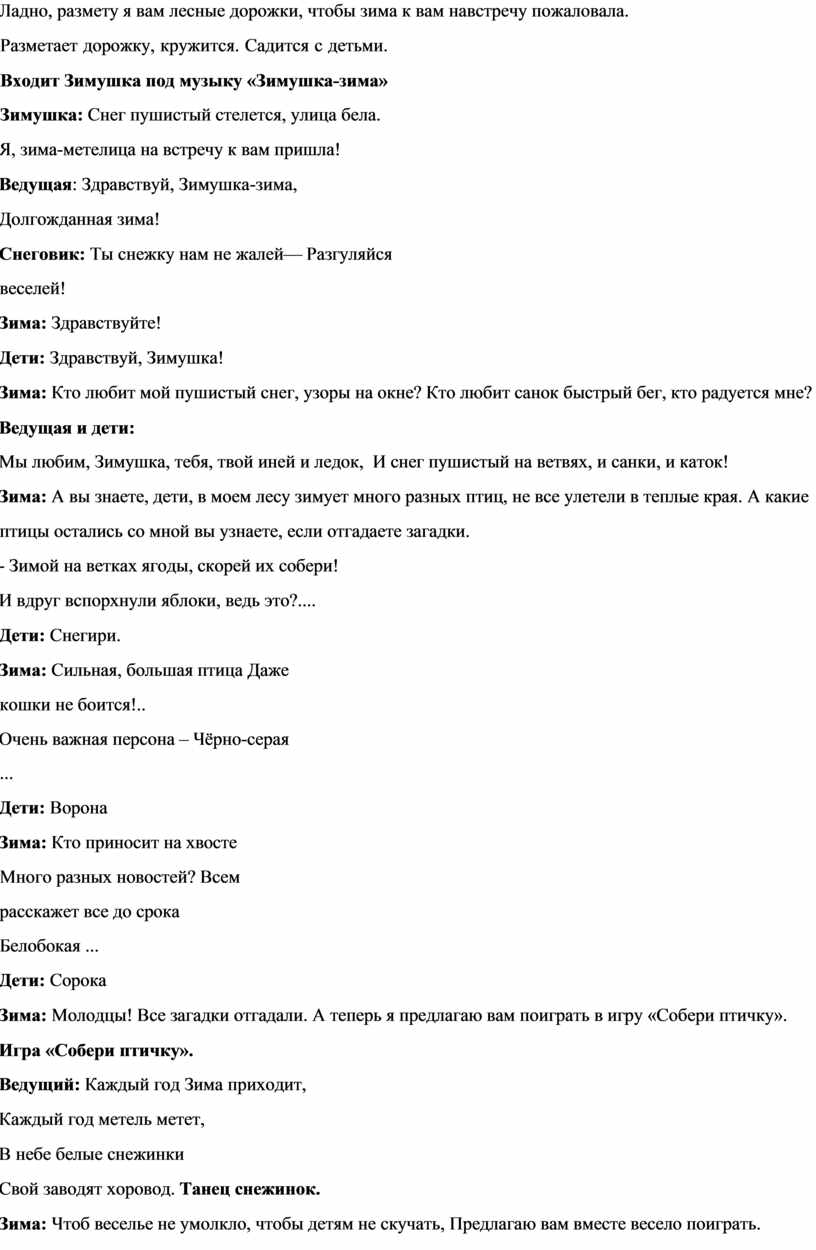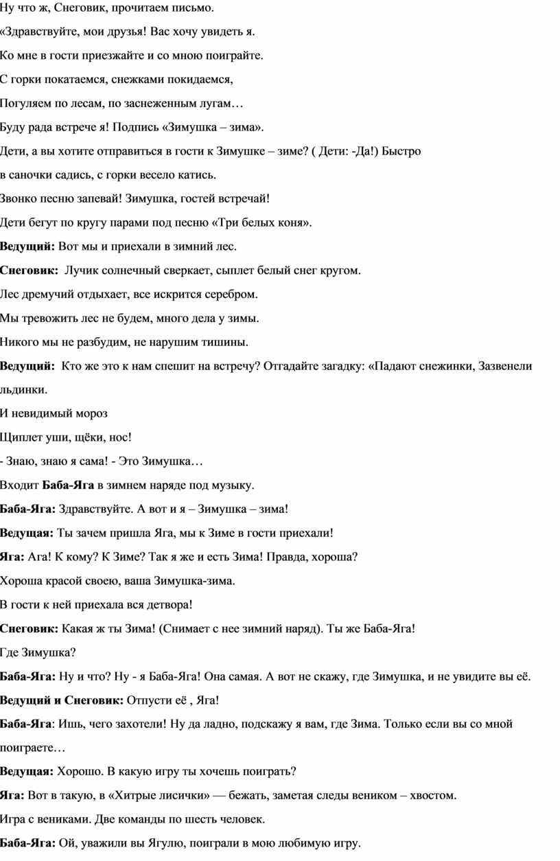 Сценарий зимнего развлечения