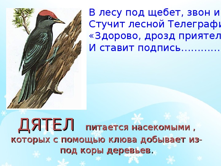 ДЯТЕЛ питается насекомыми ,