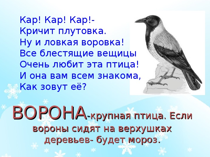 ВОРОНА--крупная птица. Если