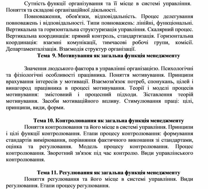 Тема 11. Регулювання як загальна функція менеджменту
