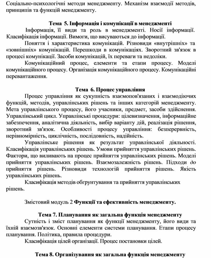 Змістовий модуль 2 Функції та ефективність менеджменту.