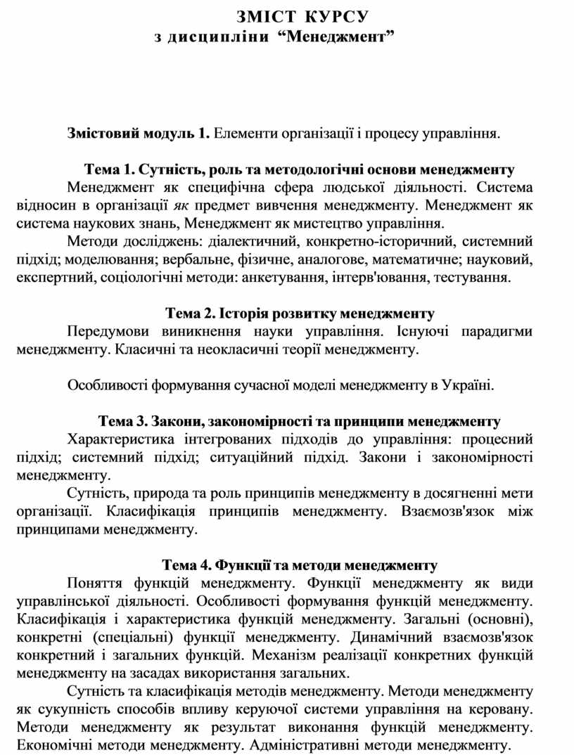 Тема 4. Функції та методи менеджменту