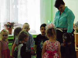 Организационный момент Цель: Активизировать внимание детей; направить детей на поиск решения проблемы. На организационном этапе был создан позитивный настрой у гостей (педагоги ДОУ и родители) и воспитанников для включения их в образовательную деятельность. Проведение ритуальной игры - приветствия эмоционально окрасило занятие. А звуковой сигнал вызвал заинтересованность и проблемную ситуацию. Воспитатель создает игровую ситуацию для постановки цели. |