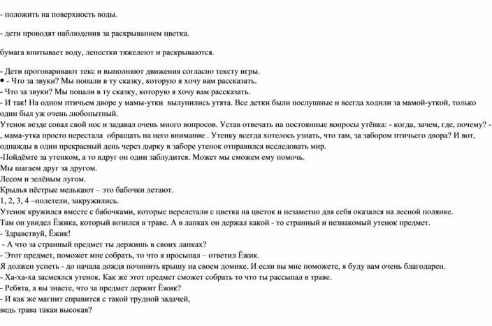 Что нужно сделать. Чтобы наши кувшинки тоже раскрыли лепестки? А теперь опустите их на воду. Давайте скажем все вместе: -Эй, цветочки просыпайтесь Лепесточки раскрывайтесь! Почему лепестки начали раскрываться? Игра «раскрытие цветка» -Говорит цветку цветок: - подними- ка свой листок (поднимают руки и опускают) Выйди на дорожку и притопни ножкой (топают ногой) Да головкой покачай, утром солнышко встречай! (вращение головой) Стебель наклони слегка (наклоны) Вот зарядка для цветка. А теперь расой умойся(умываются) Отряхнись и успокойся. Наконец готовы все – день встречать во всей красе. |