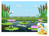 Наш утенок продолжил своё необычное путешествие и вскоре на его пути повстречался небольшой водоём круглой формы. Утенок подошел к берегу. Припекало солнце. Ему очень хотелось пить. Он попробовал воду - без вкуса; понюхал - без запаха; посмотрел - прозрачная. Утенок заметил, что в пруду плавало много загадочных цветов. Одни были еще в бутонах, другие уже полностью раскрылись. - Что это за цветы?