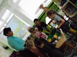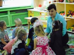 Организационный момент Цель: Активизировать внимание детей; направить детей на поиск решения проблемы. На организационном этапе был создан позитивный настрой у гостей (педагоги ДОУ и родители) и воспитанников для включения их в образовательную деятельность. Проведение ритуальной игры - приветствия эмоционально окрасило занятие. А звуковой сигнал вызвал заинтересованность и проблемную ситуацию. Воспитатель создает игровую ситуацию для постановки цели. |