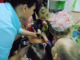 На протяжении всей образовательной деятельности я старалась учитывать мнение каждого ребёнка, выслушивать предложения и подводить детей к верному решению. При экспериментировании учитывалась и подготовка детей, и уровень знания каждого. В случае возникновения затруднительной ситуации, например, перемешать песок, собрать магнитом металлические гвоздики помогала ребёнку. При оказании помощи диалог с детьми происходил на уровне глаза, в глаза показывая тем самым принцип партнёрской позиции педагога и детей.