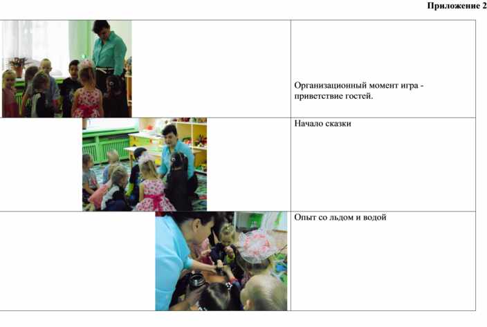 В процессе образовательной деятельности были использованы следующие методы, и приёмы это наблюдение - где дети смогли на примере бумажного цветка увидеть свойства бумаги. Наблюдение за таянием льда позволило увидеть три состояния воды.