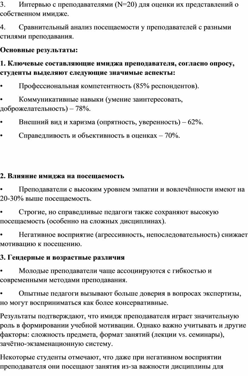 3. Интервью с преподавателями (N=20) для оценки их представлений о собственном имидже.