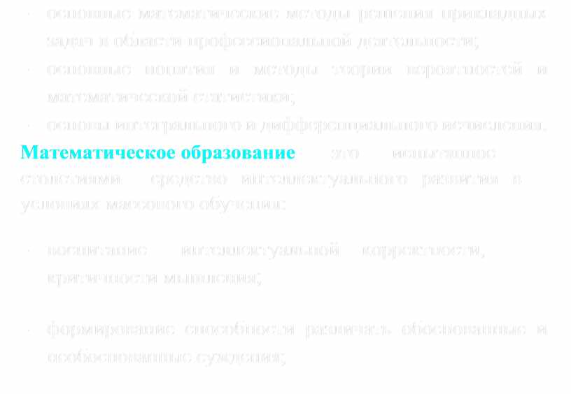 Математическое образование – это испытанное столетиями средство интеллектуального развития в условиях массового обучения: