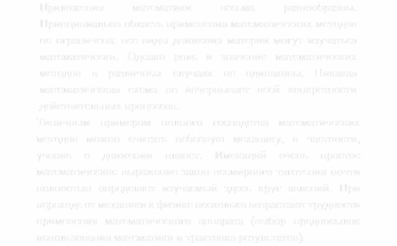 Принципиально область применения математических методов не ограничена: все виды движения материи могут изучаться математически. Однако роль и значение математических методов в различных случаях не одинаковы. Никакая математическая схема не исчерпывает всей конкретности действительных процессов.