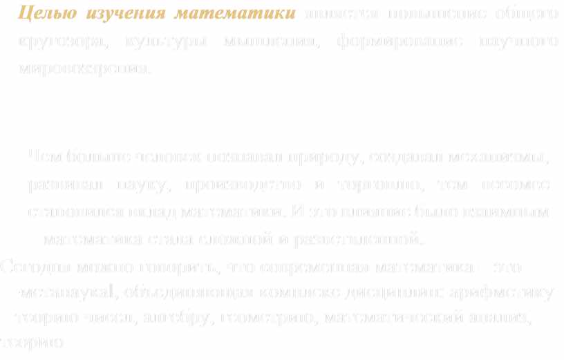 Целью изучения математики является повышение общего кругозора, культуры мышления, формирование научного мировоззрения.