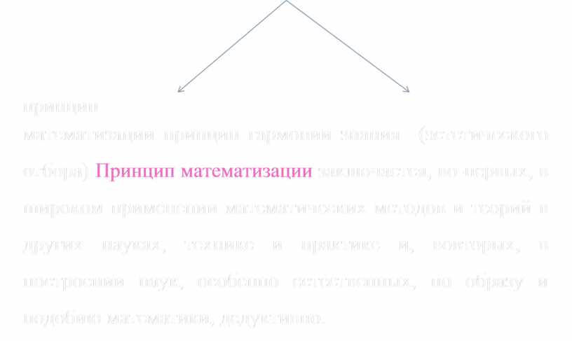 математизации принцип гармонии знания (эстетического отбора) Принцип математизации заключается, во-первых, в широком применении математических методов и теорий в других науках, технике и практике и, вовторых, в построении наук, особенно естественных, по образу и подобию математики, дедуктивно.