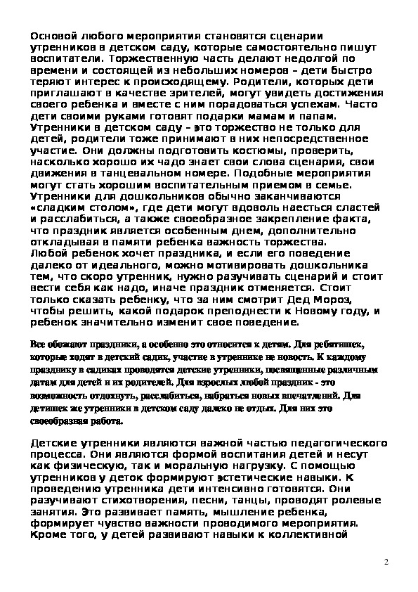 разнообразным сферам нашей жизни. К примеру, утренник,