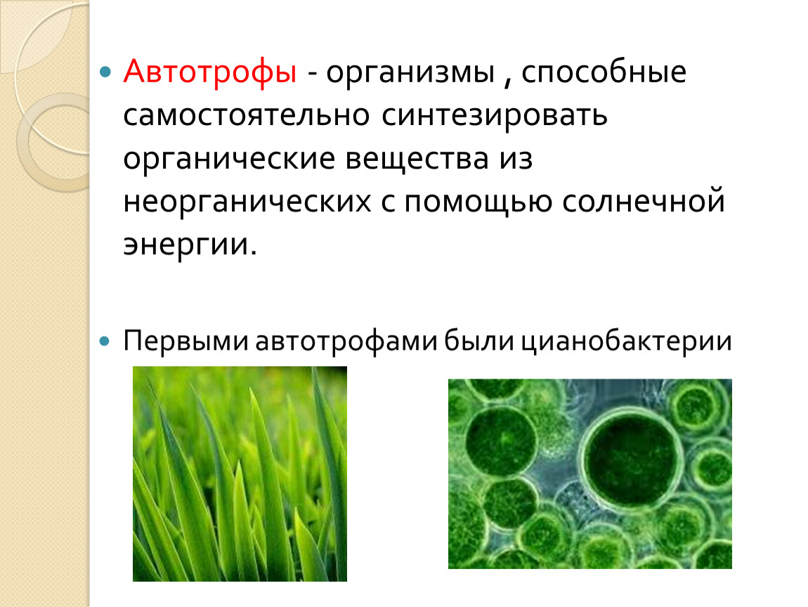 Автотрофы - организмы , способные самостоятельно синтезировать органические вещества из неорганических с помощью солнечной энергии.