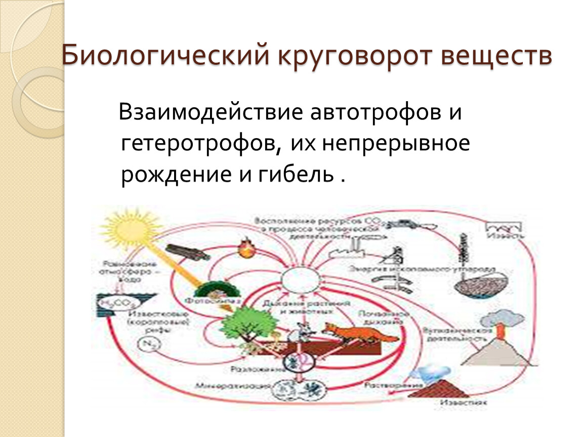 Взаимодействие автотрофов и гетеротрофов, их непрерывное рождение и гибель .