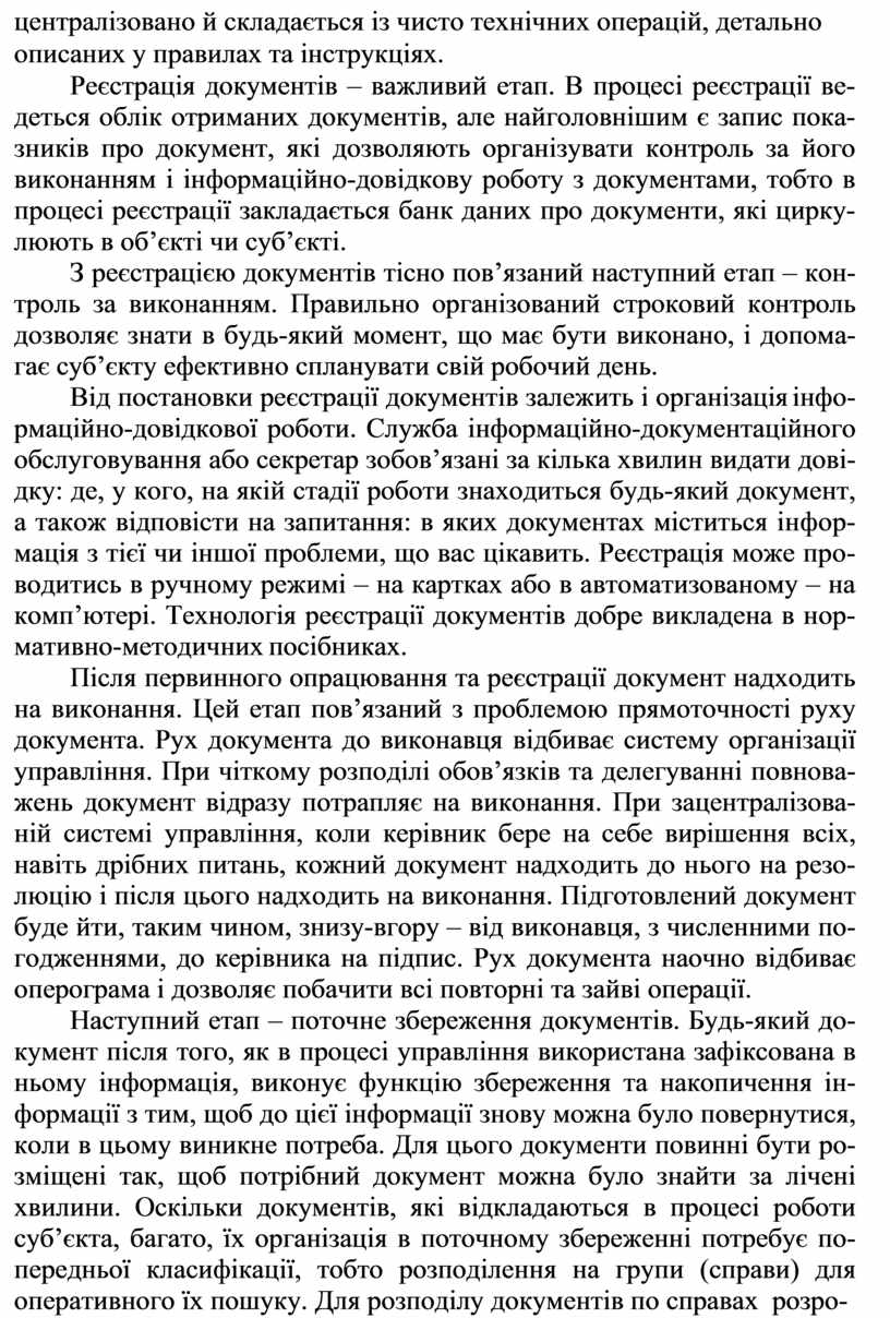 Порядок роботи з документами теж розподіляється на певні етапи. Кожний етап має свої прийоми найкращого його виконання. Почина- ється ця робота з надходження і первинного опрацювання документів. Цей етап є обов’язковим, незалежно від способу передачі інформації: поштою, особисто, телеграфом, факсом. Як правило, ця робота ведеться