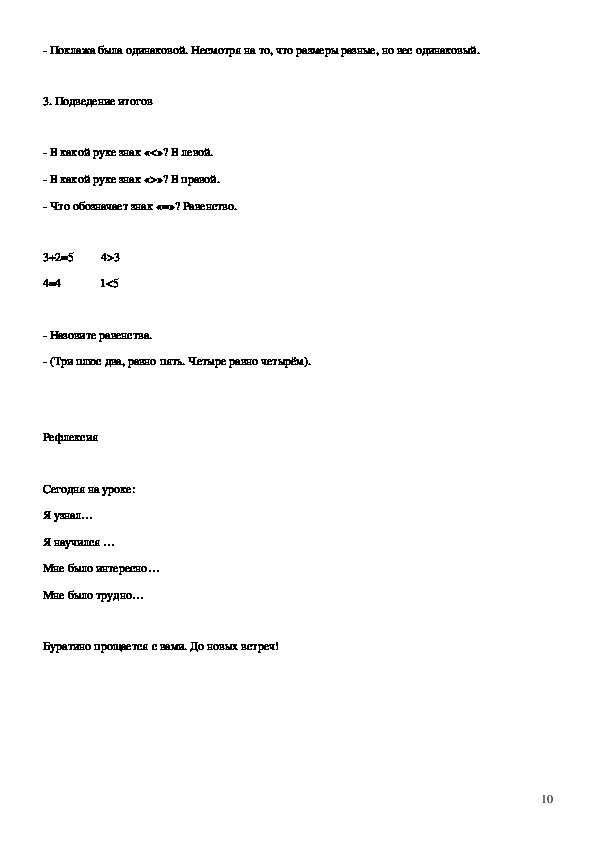 Урок по математике на тему: "Знаки больше, меньше и равно". Хочется, чтобы дети побыстрее поняли эти знаки и умели их различать.Ход урока