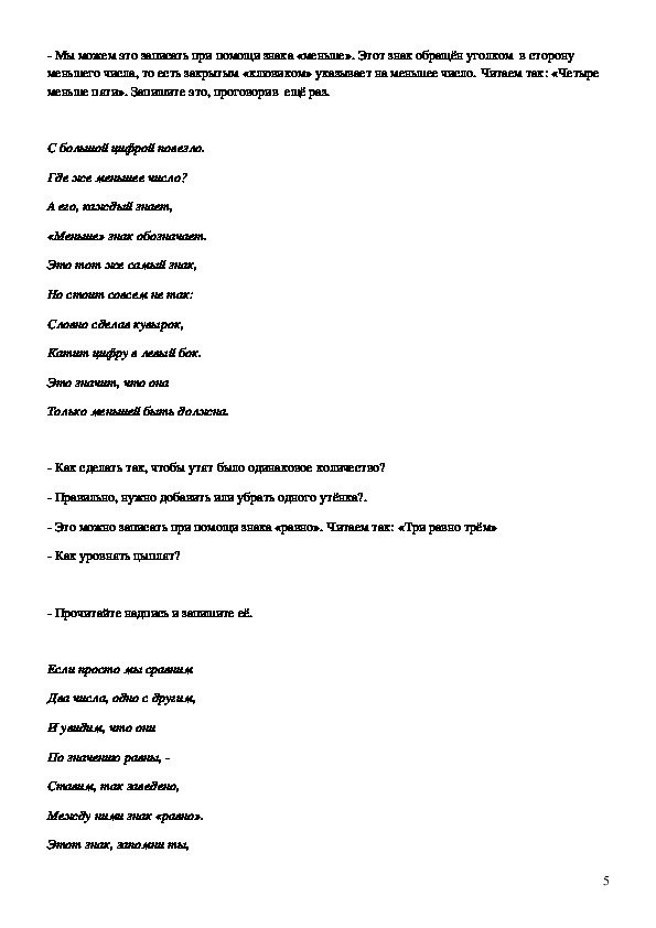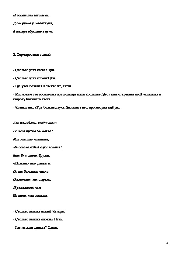 меньшего числа, то есть закрытым «клювиком» указывает на меньшее число. Читаем так: «Четыре