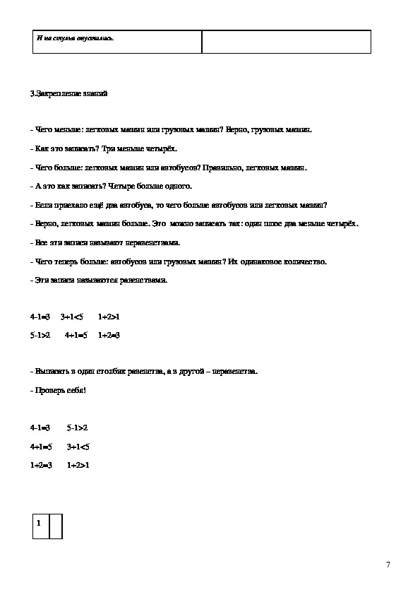 Верно, легковых машин больше. Это можно записать так: один плюс два меньше четырёх.
