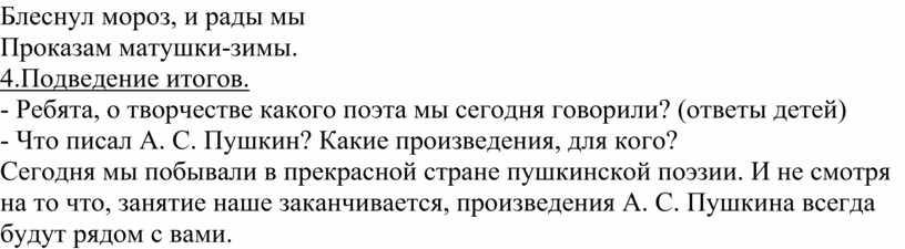 Сегодня мы побывали в прекрасной стране пушкинской поэзии. И не смотря на то что, занятие наше заканчивается, произведения А. С. Пушкина всегда будут рядом с вами.
