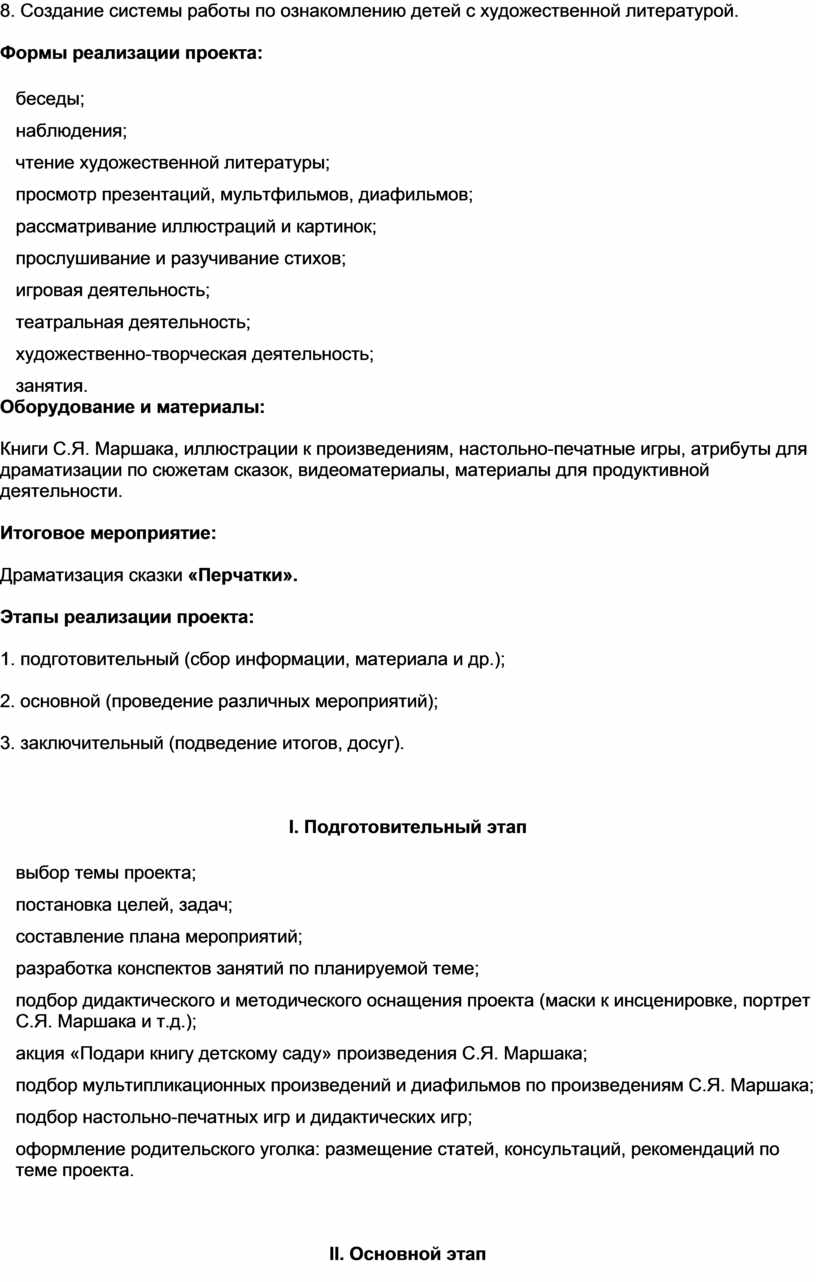 8. Создание системы работы по ознакомлению детей с художественной литературой.