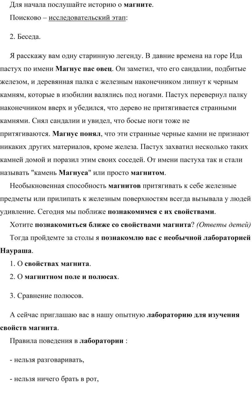 Цель: развитие познавательной активности детей в процессе знакомства со свойствами магнитов___