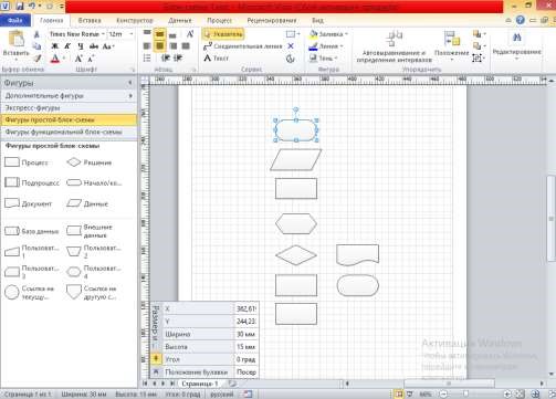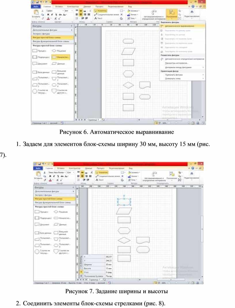 6. Задаем для элементов блок-схемы ширину 30 мм, высоту 15 мм (рис.
