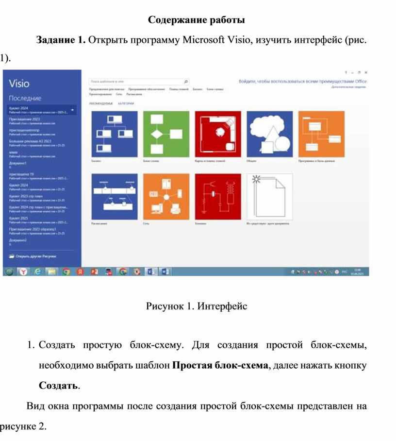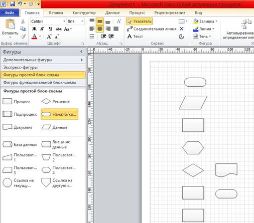 Задание 1. Открыть программу Microsoft Visio, изучить интерфейс (рис.