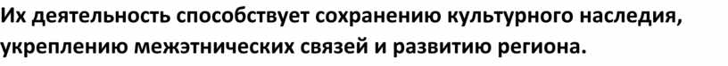 Их деятельность способствует сохранению культурного наследия, укреплению межэтнических связей и развитию региона.