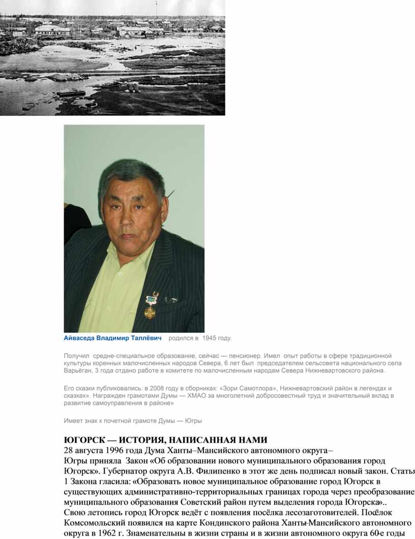 ЮГОРСК — ИСТОРИЯ, НАПИСАННАЯ НАМИ