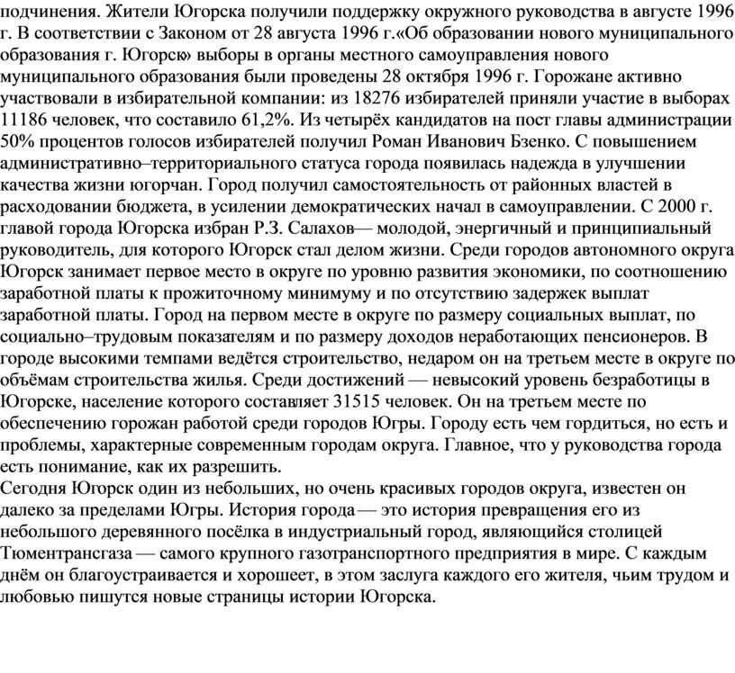 образовании нового муниципального образования город Югорск». Губернатор округа