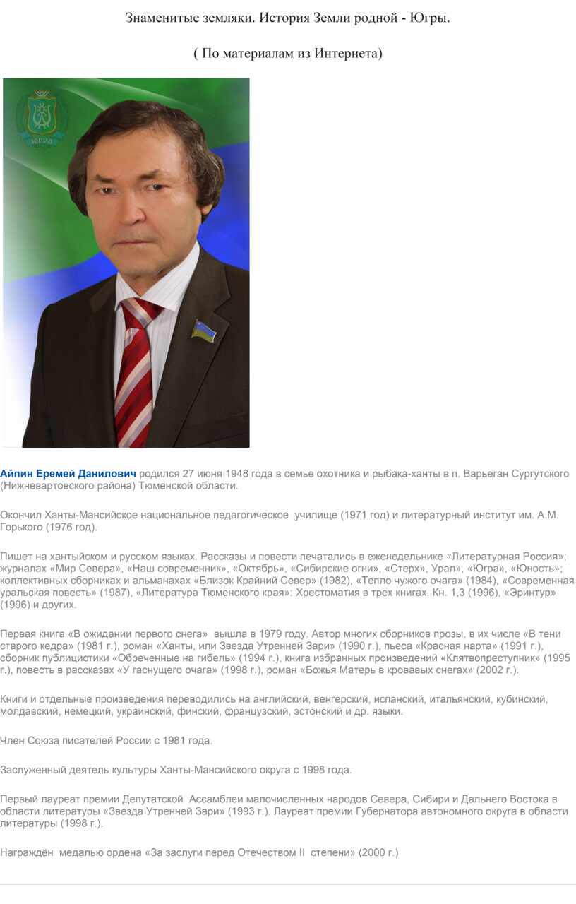 Знаменитые земляки. История Земли родной - Югры.