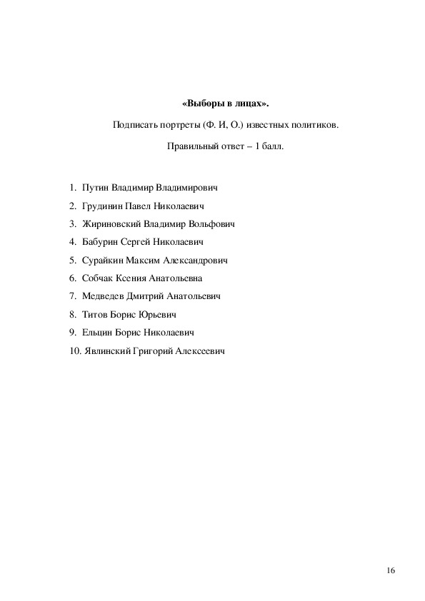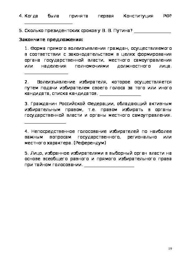 5. Сколько президентских сроков у В. В. Путина? _________________