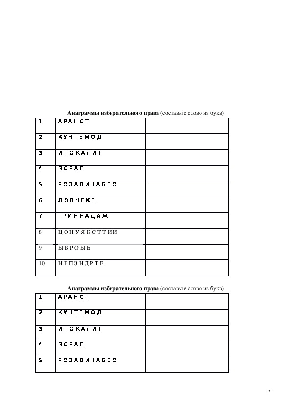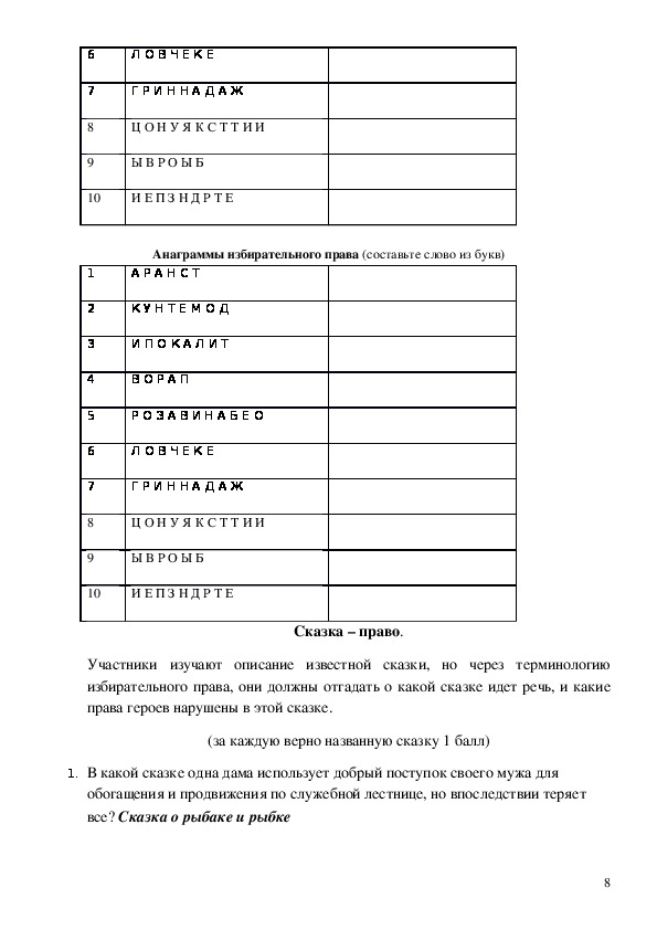 5Участникам игры выдаются карточки с анаграммами. Задача игроков – отгадать как можно больше