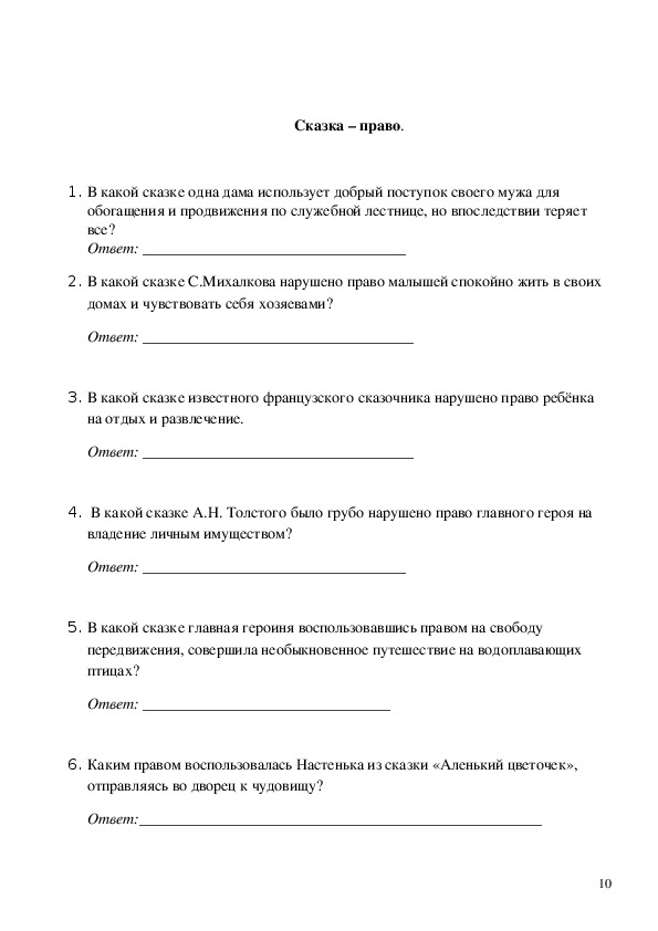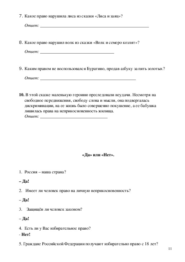 8. Какое право нарушил волк из сказки «Волк и семеро козлят»?