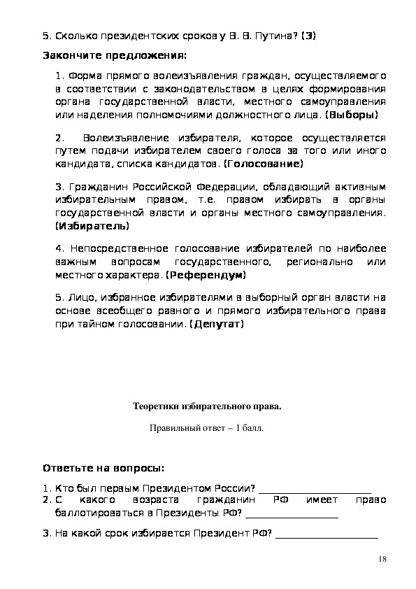 5. Граждане Российской Федерации получают избирательно право с 18 лет?