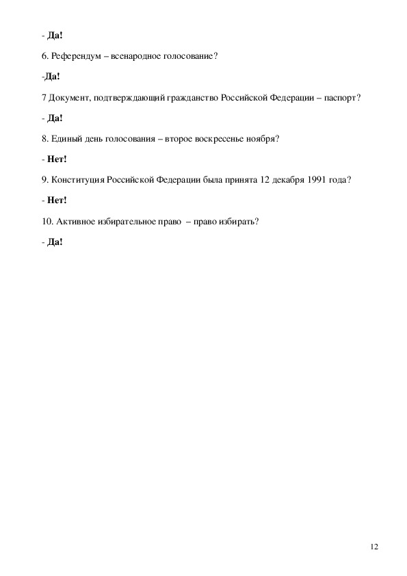 9. Конституция Российской Федерации была принята 12 декабря 1991 года?