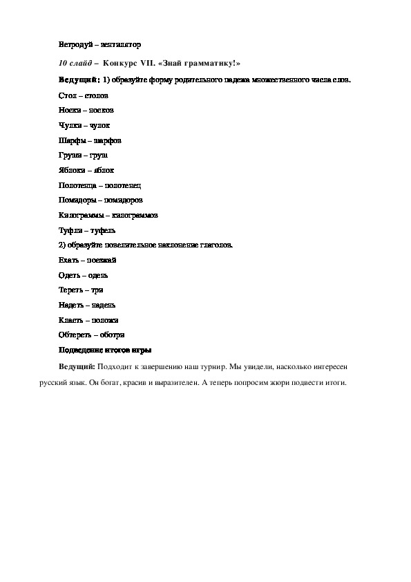 10 слайд – Конкурс VII. «Знай грамматику!»