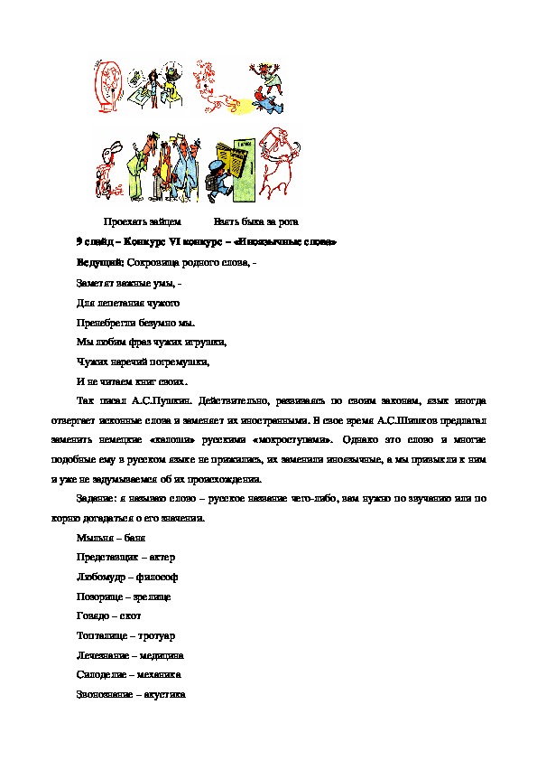 9 слайд – Конкурс VI конкурс – «Иноязычные слова»